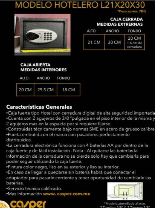 CAJA FUERTE TIPO HOTEL MODELO L21x20